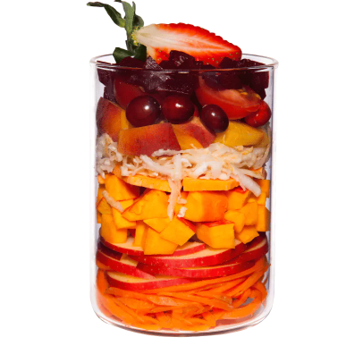 Knapperige wortelen, pompoen, zoete aardappel en rode appel worden aangevuld met een mix van bessen, die veel vitamine C leveren voor een sterke weerstand. Rozenblaadjes, rozenbottels en duindoornbessen vullen deze rode mix perfect aan.